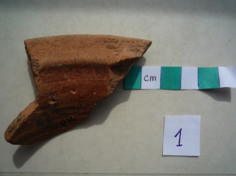 Ce tesson de poterie locale, retrouvé à Dembeni, présente des décorations caractéristiques des productions artisanales comoriennes.